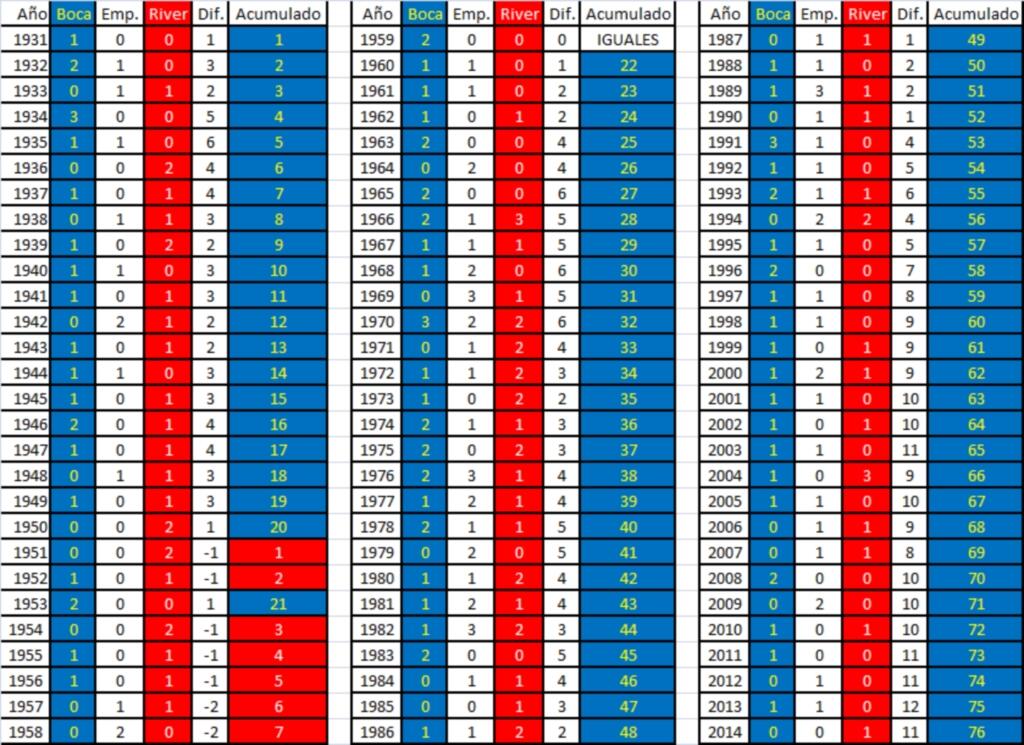 Los años arriba en el historial de cada uno, 76-7. Demoledor.